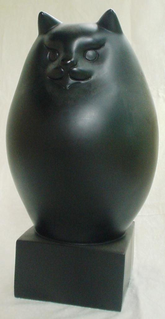On the other hand, the "Black Cat" is dark-colored, almost black. This round creature does not seem as though it has moved for some time. the stance of this piece of art is tall, more vertical than horizontal; making it appear regal and important. The "Black Cat" because of its stance, coloring, and shape is a very calming piece of art.